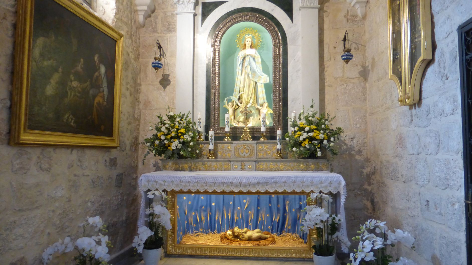 Nativity scene in the Grotto at Shepherd's Fields.