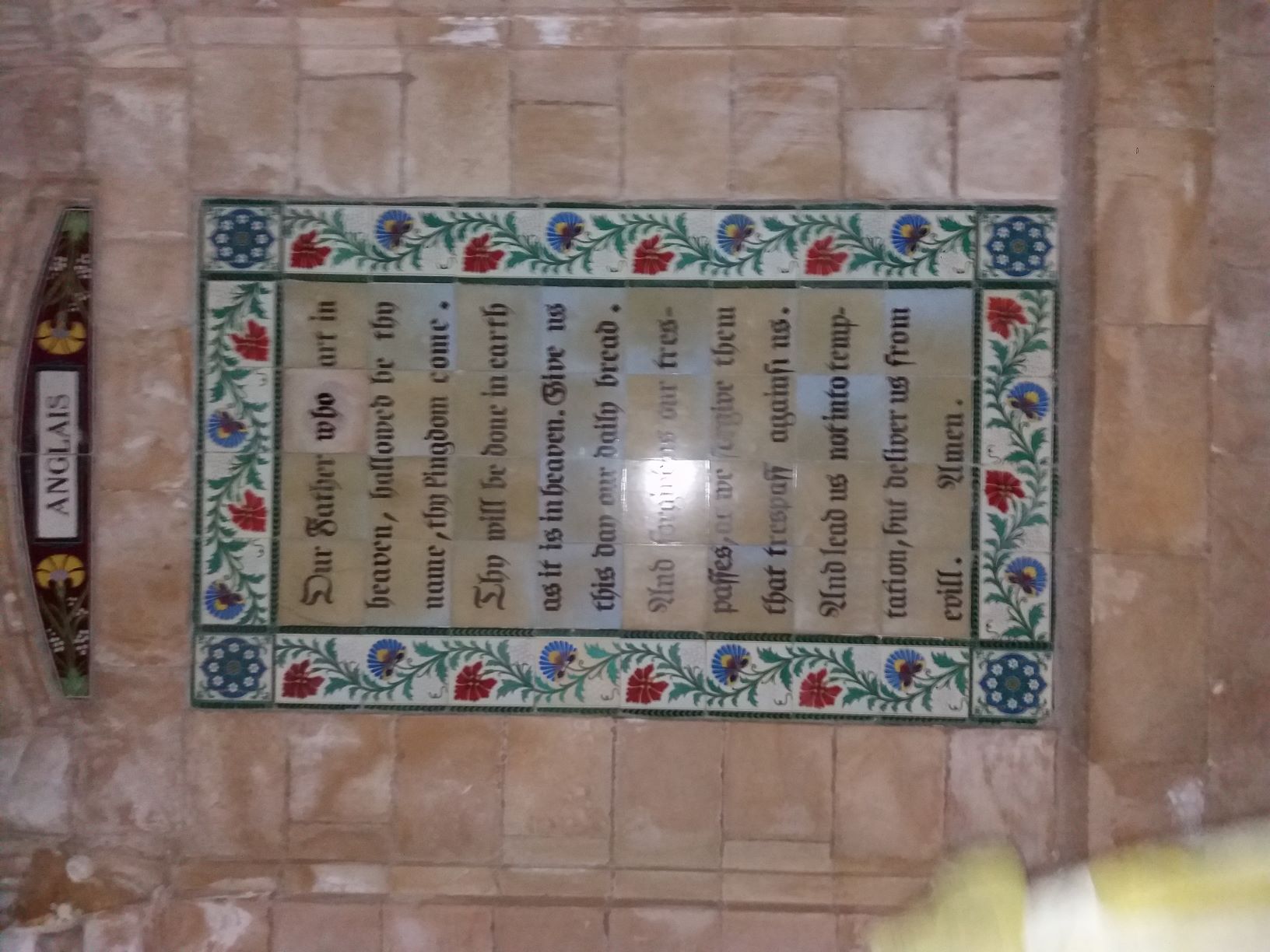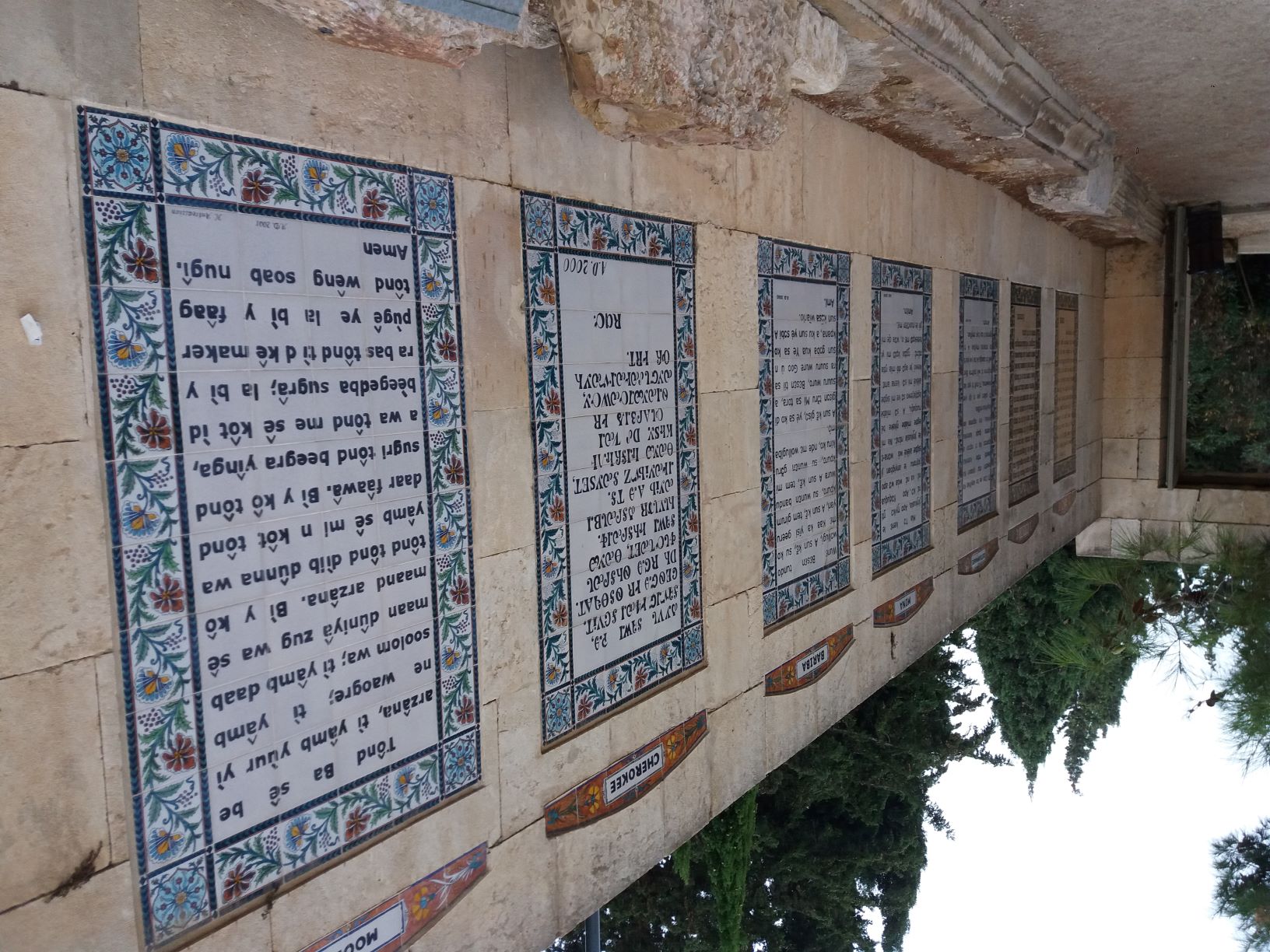 At Pater Noster Grotto - here the Lord's prayer is written in every language - this is the English one.