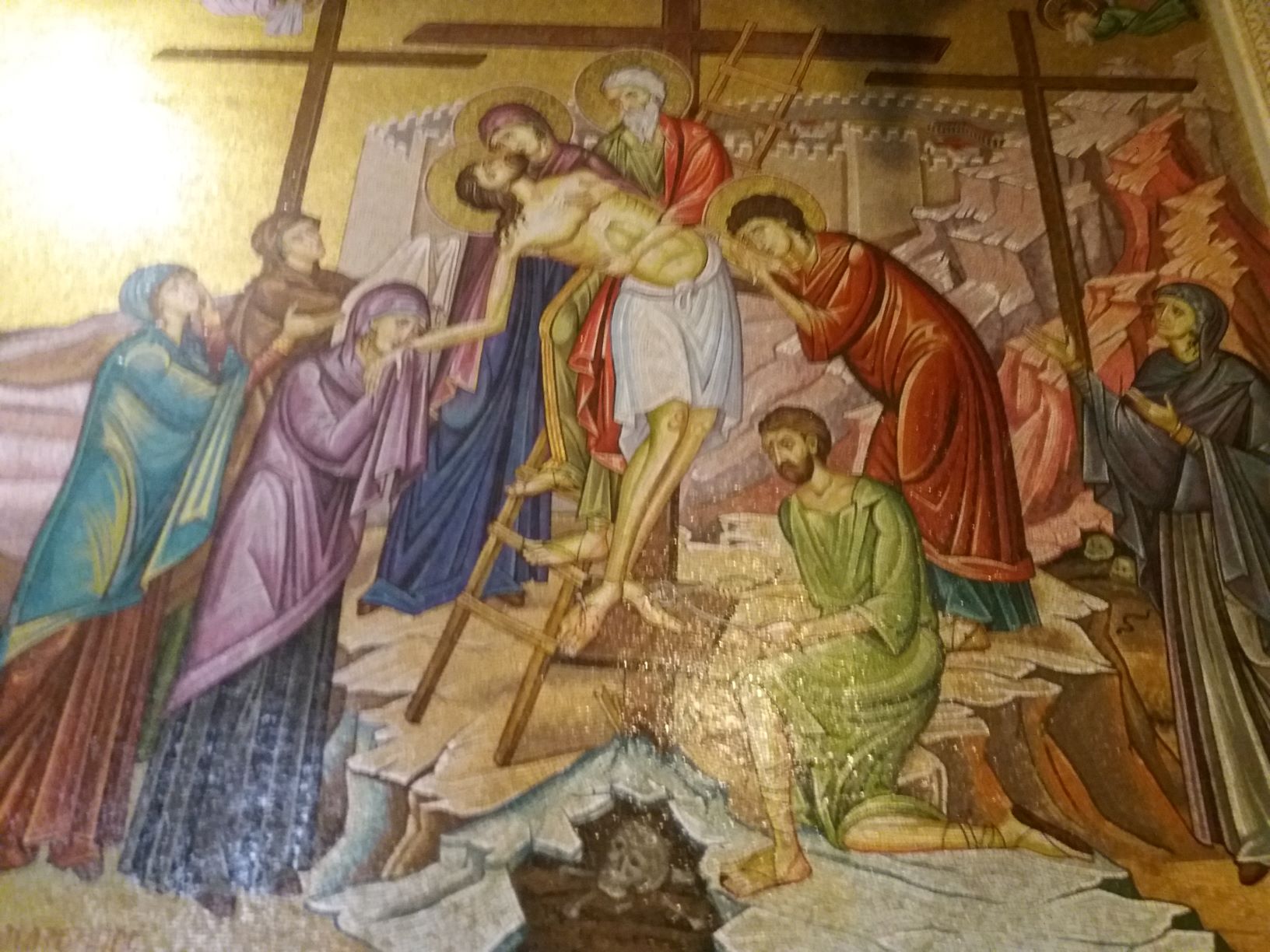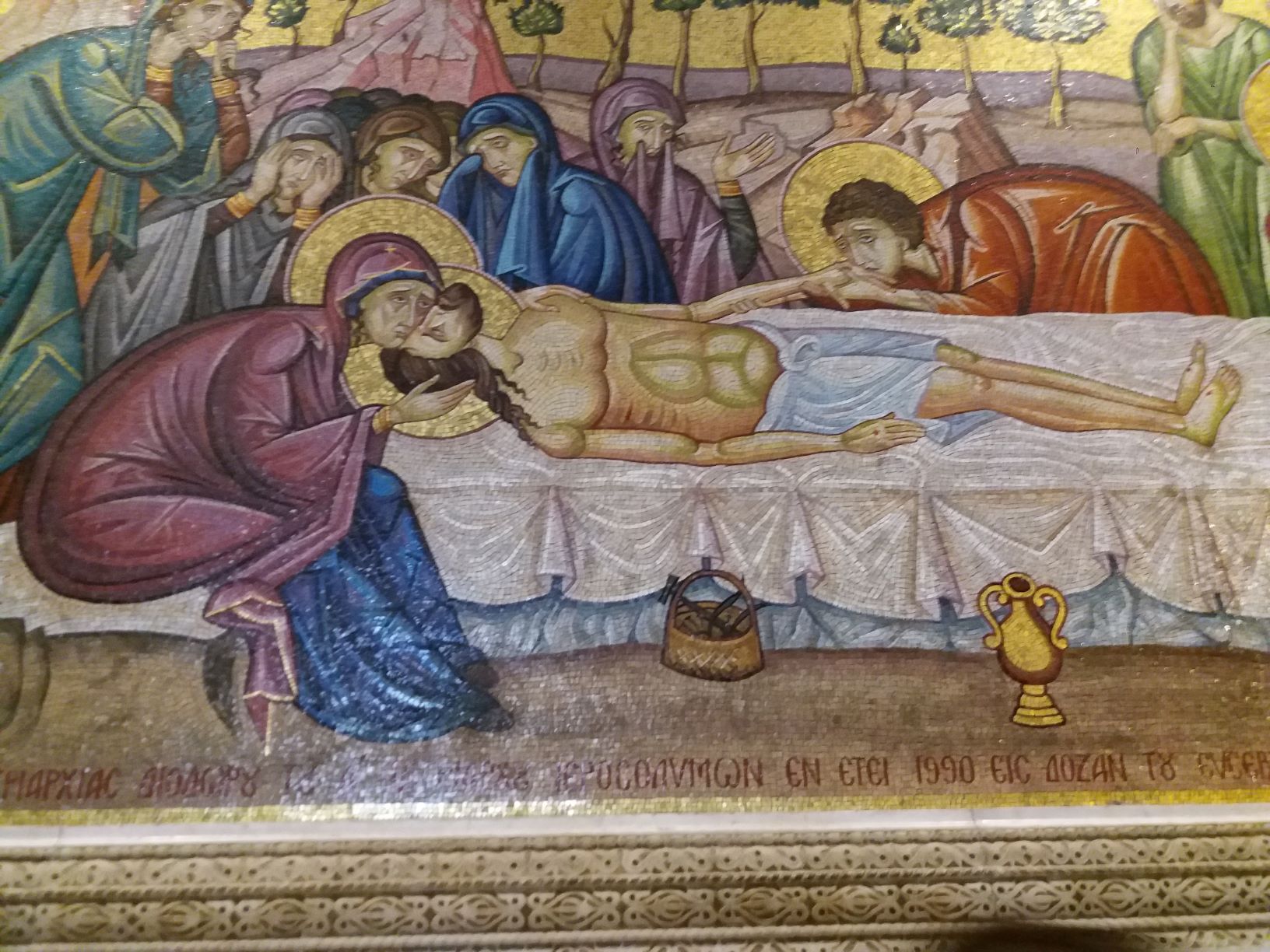 Sunday, and another very full day, where we covered Old Jerusalem, the pool of Bethesda and St Anne's Church (Our lady's birthplace). Then to the Via Dolorosa, which is in the heart of the old town. It is full of shops with their wares displayed along the street. Giving the tendency of some of our group to become distracted by the goods on offer, we bolted along the Via Dolorosa at breakneck speed. We got to the Church of the Holy Sepulchre and had Mass there then saw the base of Mount Calvary; the Tomb of the Resurrection and then after lunch went to Dormition Abbey - the place where Mary is said to have died and from there onto the Room of the Last Supper.