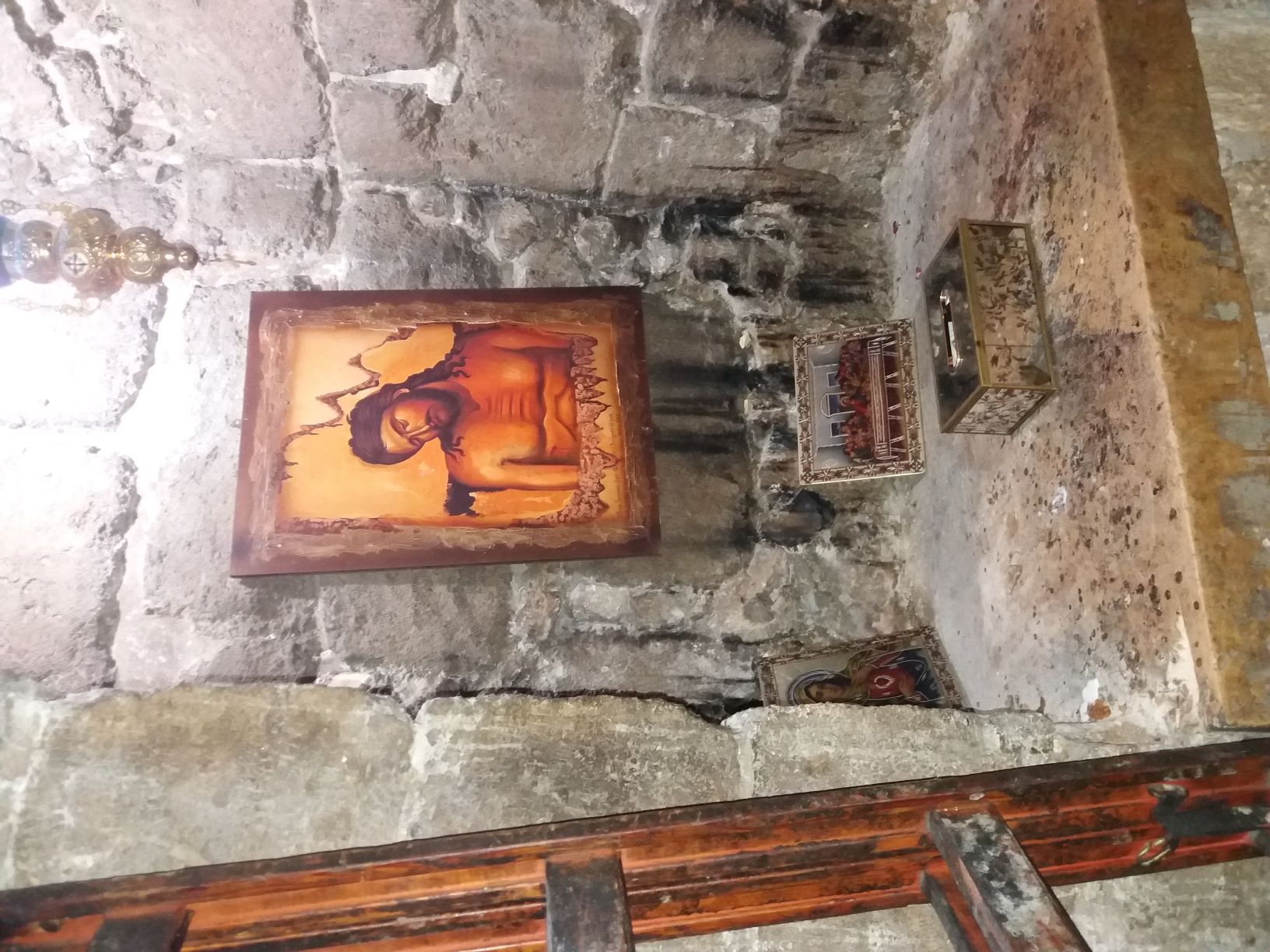Inside the Church of the Wedding. On the left is our guide, Mike. The priest Fr. Julien was our pilgrimage leader.